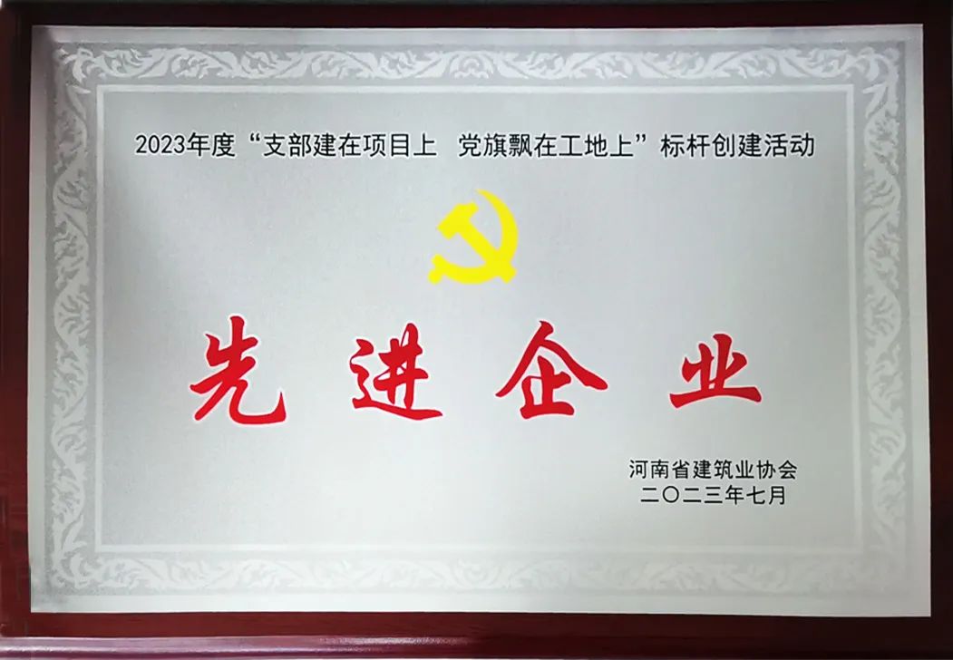 在此次活動(dòng)中,河南興瑞建設(shè)有限公司獲評(píng)2023年度“支部建在項(xiàng)目上,黨旗飄在工地上”標(biāo)桿創(chuàng)建活動(dòng)先進(jìn)企業(yè)。