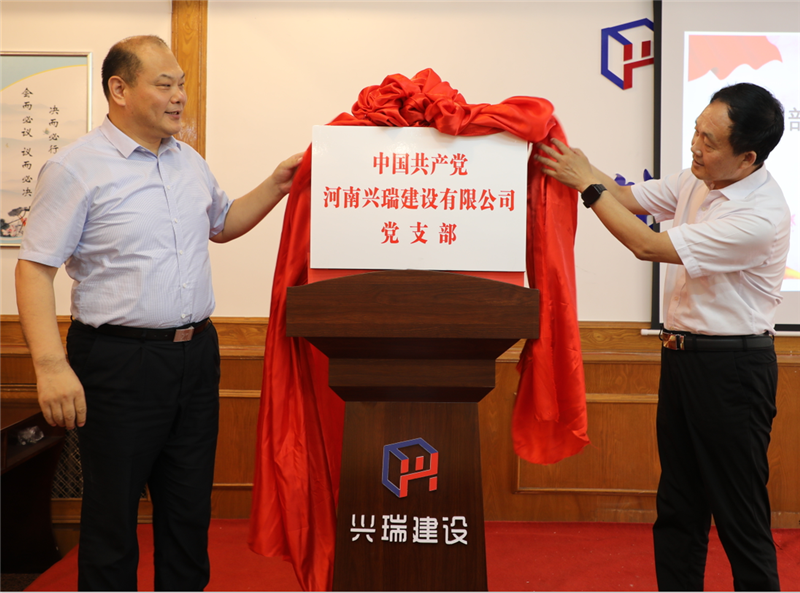 首先,瓦店鄉(xiāng)黨委副書記楊忠強同志宣讀《關(guān)于河南興瑞建設(shè)有限公司成立黨支部的批復(fù)》。 接下來,由張兆閣副部長和牛敬堂董事長共同為黨支部揭牌。