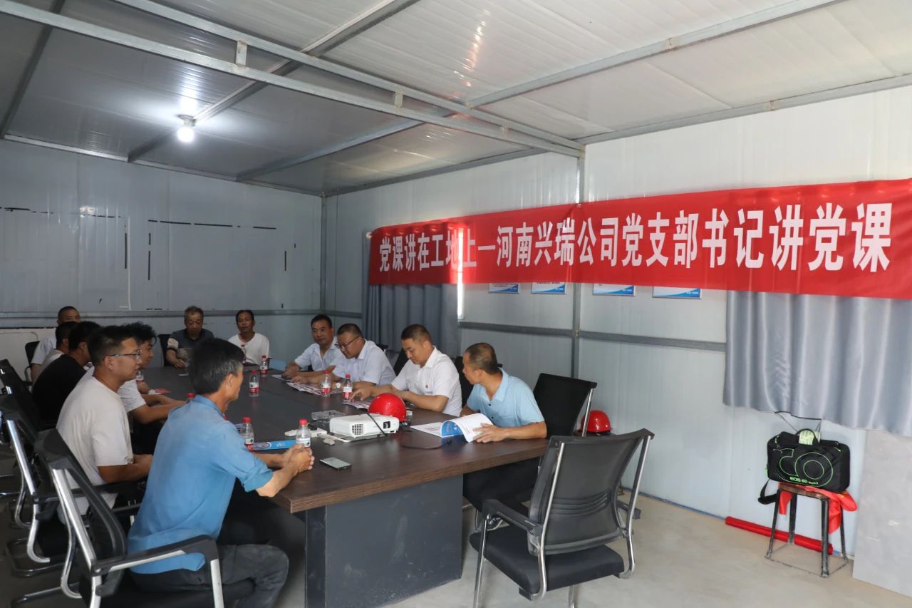 為深入貫徹落實(shí)黨支部2024年學(xué)習(xí)教育的總體安排和部署, 扎實(shí)推進(jìn)黨建工作與項(xiàng)目建設(shè)工作深度融合,將黨建引領(lǐng)力轉(zhuǎn)化為攻堅(jiān)克難的推動(dòng)力,切實(shí)提升項(xiàng)目建設(shè)和管理水平,讓黨旗高高飄揚(yáng)在鶴壁凱旋廣場(chǎng)項(xiàng)目一線,6月14日,河南興瑞建設(shè)有限公司黨支部開展支部書記到鶴壁凱旋廣場(chǎng)項(xiàng)目講黨課活動(dòng),公司黨支部書記李振,以《不忘初心強(qiáng)黨性?牢記使命勇?lián)?dāng)》為題,為全體黨員、入黨積極分子講授專題黨課。