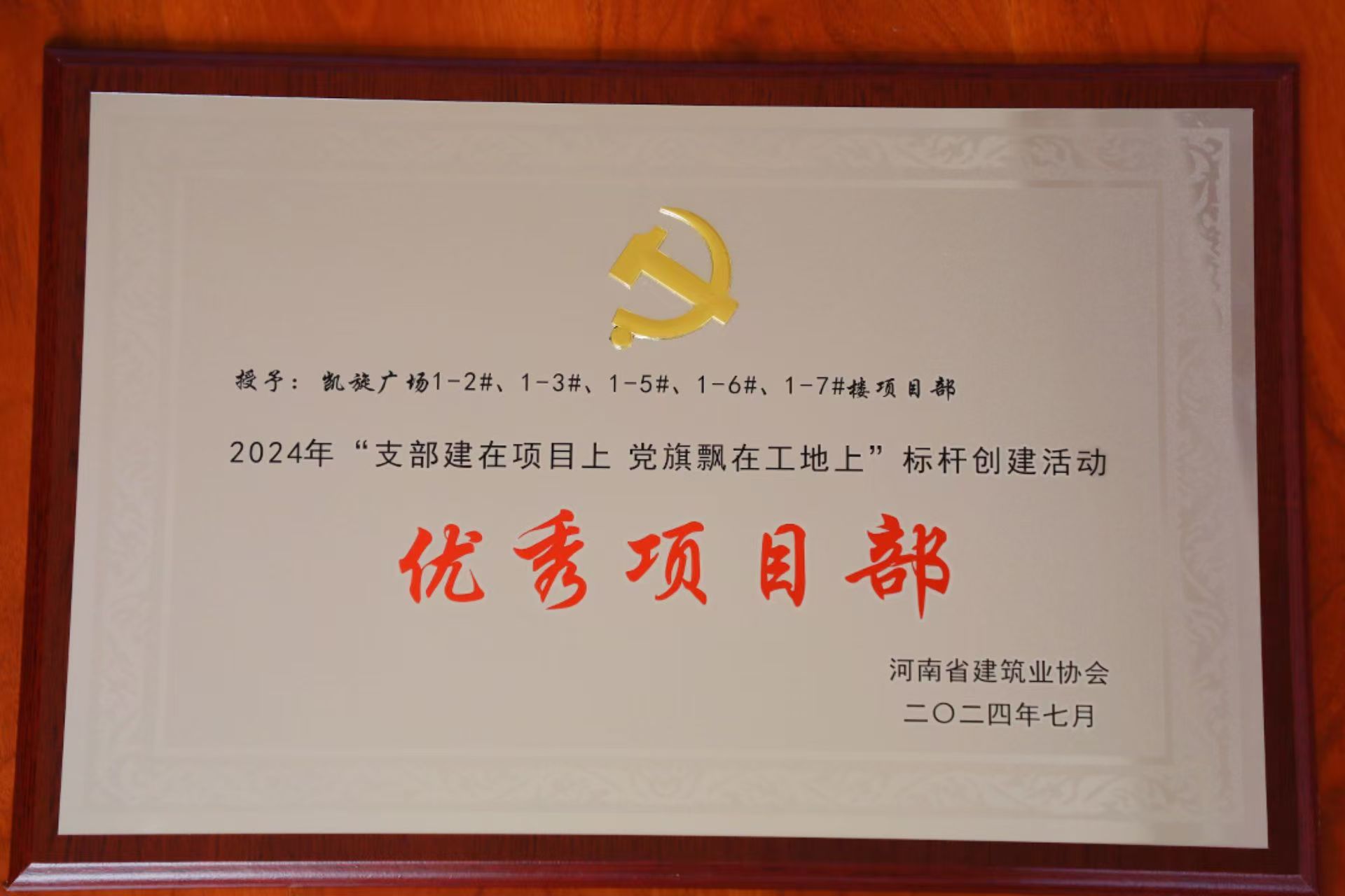 近日,河南省建筑業(yè)協(xié)會公布2024年度“支部建在項目上,黨旗飄在工地上”標(biāo)桿創(chuàng)建評估結(jié)果公示的通知,鶴壁凱旋廣場1-2#、1-3#、1-5#、1-6#、1-7#樓項目部被評為“標(biāo)桿創(chuàng)建活動優(yōu) 秀項目部”。