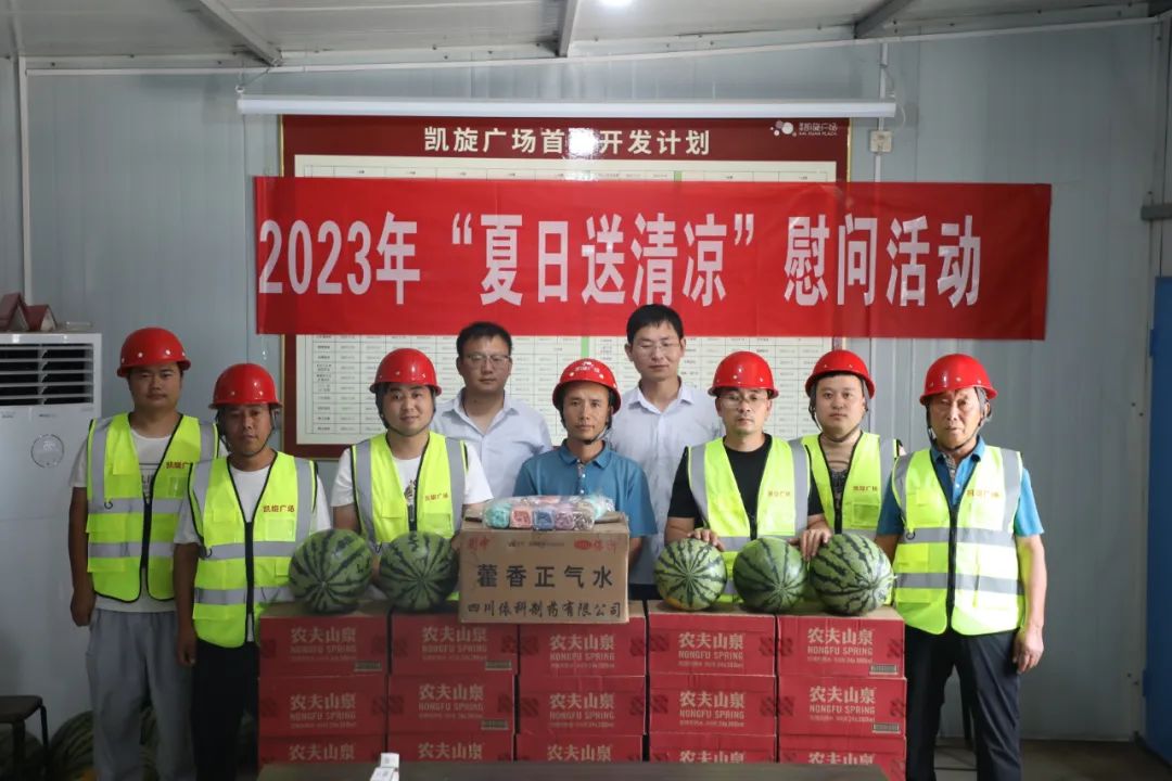 酷暑盛夏,烈日炎炎,氣溫節(jié)節(jié)攀升,高溫預(yù)警不斷。7月14日,公司黨支部書記帶領(lǐng)工會工作人員到公司鶴壁凱旋廣場項(xiàng)目一線班組開展“夏送清涼”慰問活動,為堅(jiān)守在工作崗位上的一線民工送去藿香正氣水、毛巾、西瓜、礦泉水等防暑降溫物品,關(guān)心關(guān)愛一線民工身體健康,凝聚團(tuán)結(jié)奮進(jìn)的精神力量。