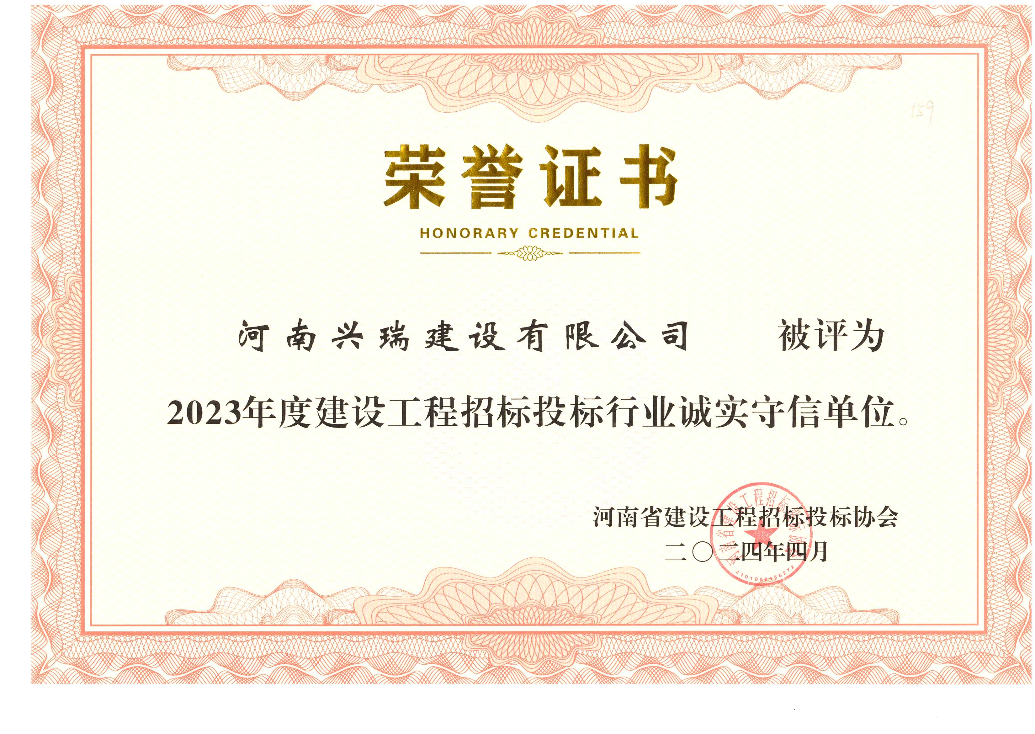 近日,河南省建設(shè)工程招標(biāo)投標(biāo)協(xié)會(huì)發(fā)布了《關(guān)于公布2023年度建設(shè)工程招標(biāo)投標(biāo)行業(yè)誠實(shí)守信單位的通知》,我公司榮獲河南省招標(biāo)投標(biāo)協(xié)會(huì)2023年度“誠實(shí)守信單位”榮譽(yù)稱號(hào)!