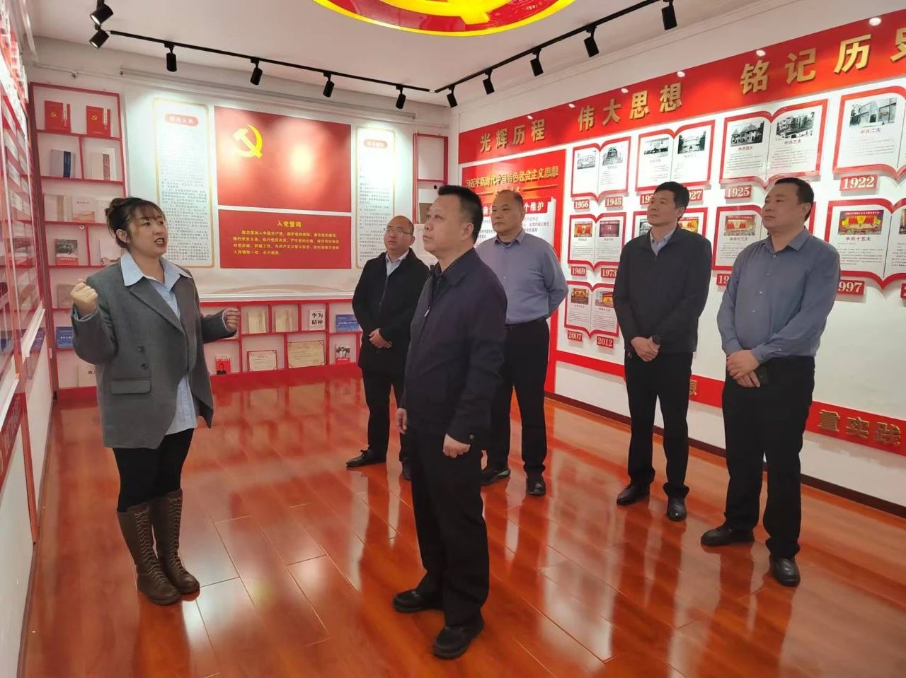李部長一行參觀了黨建文化館,深入了解“以高質(zhì)量黨建引領(lǐng)企業(yè)高質(zhì)量發(fā)展”工作情況。在詳細(xì)聽取了牛敬堂董事長關(guān)于黨建工作匯報(bào),在展板、書刊和榮譽(yù)牌展示各版塊不時(shí)地駐足詢問,了解公司黨建工作的創(chuàng)新舉措和取得的成效。并對河南興瑞公司黨建引領(lǐng)行業(yè)協(xié)會(huì)商會(huì)發(fā)展、行業(yè)協(xié)會(huì)商會(huì)作用發(fā)揮、融合共建等工作給予充分肯定。